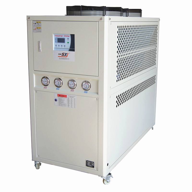 工業(yè)冷水機(jī)組上的冷凝器和蒸發(fā)器均屬于壓力容器,根據(jù)規(guī)定,要在機(jī)組的高壓端即冷凝器本體上安裝安全閥,一旦機(jī)組處于非正常的工作環(huán)境下時(shí),安全閥可以自動(dòng)泄壓,以防止高壓可能對(duì)人體造成的傷害。所以安全閥的定期校驗(yàn)對(duì)于整臺(tái)機(jī)組的安全性是十分重要的。水冷式冷凝器的冷卻水由于是開式的循環(huán)回路,一般采用的自來水經(jīng)冷卻塔循環(huán)使用。當(dāng)水中的鈣鹽和鎂鹽含量較大時(shí),極易分解和沉積在冷卻水管上而形成水垢,影響傳熱。工業(yè)冷水機(jī)結(jié)垢過厚還會(huì)使冷卻水的流通截面縮小,水量減少,冷凝壓力上升。